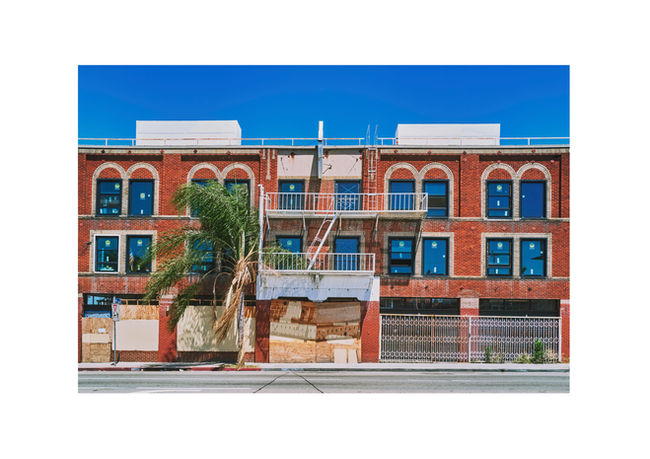 In "Everyday Symphony", the cityscape of Los Angeles transforms into a vibrant orchestration of shape, color, and light. Each photograph captures a single facade, and within it, the world unfolds in three distinct movements: the base, the facade, and the sky. The base grounds us: a foundation of texture and weight.